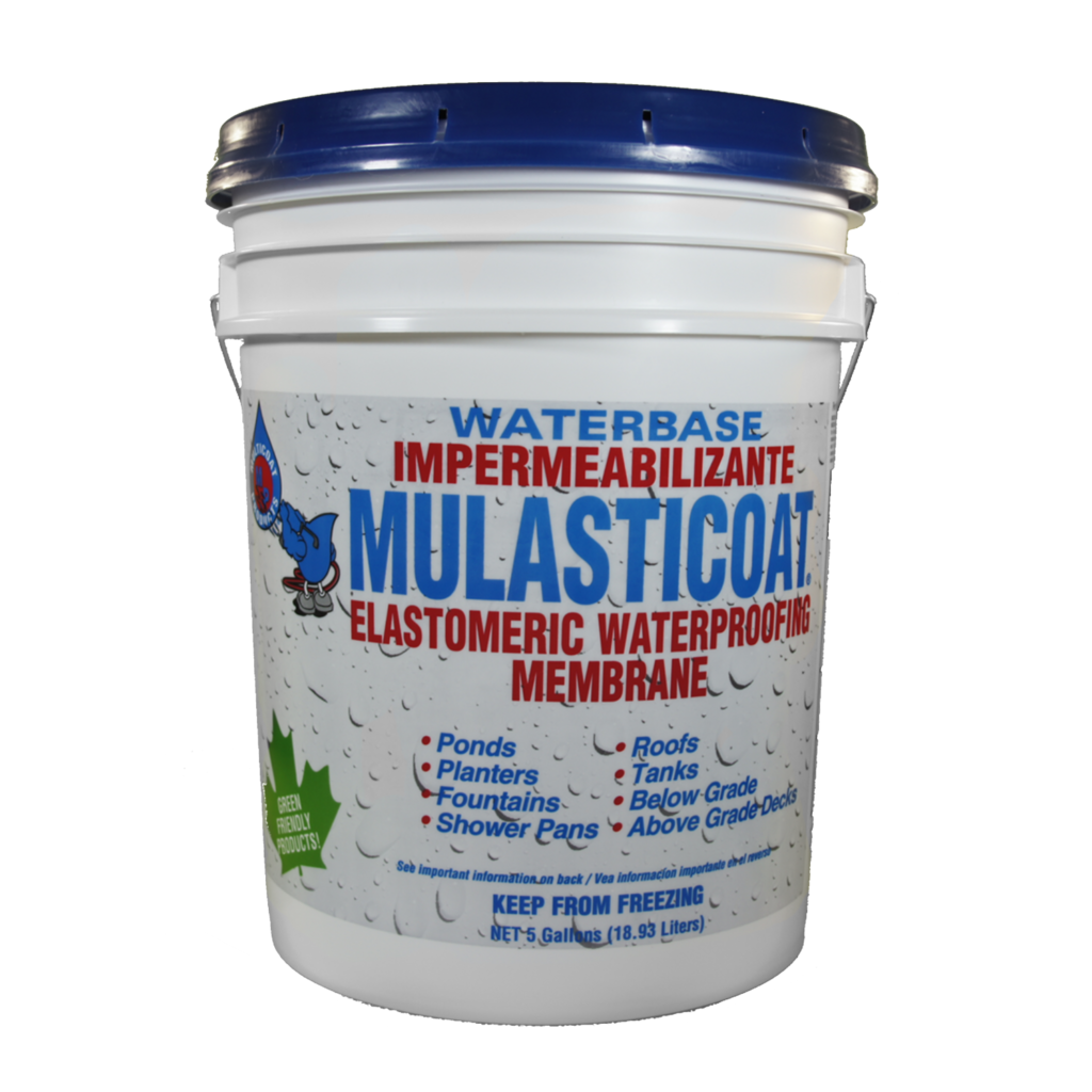 A unique latex acrylic water-based coating which forms an elastomeric waterproof membrane. Mulasticoat features low temperature flexibility, excellent bonding characteristics to most building materials, and super elasticity. MULASTICOAT has a wide variety of waterproofing applications, including above grade decks, roof repairs, tank lining, water moats, reflection pools, shower pans, between slab membranes, etc.